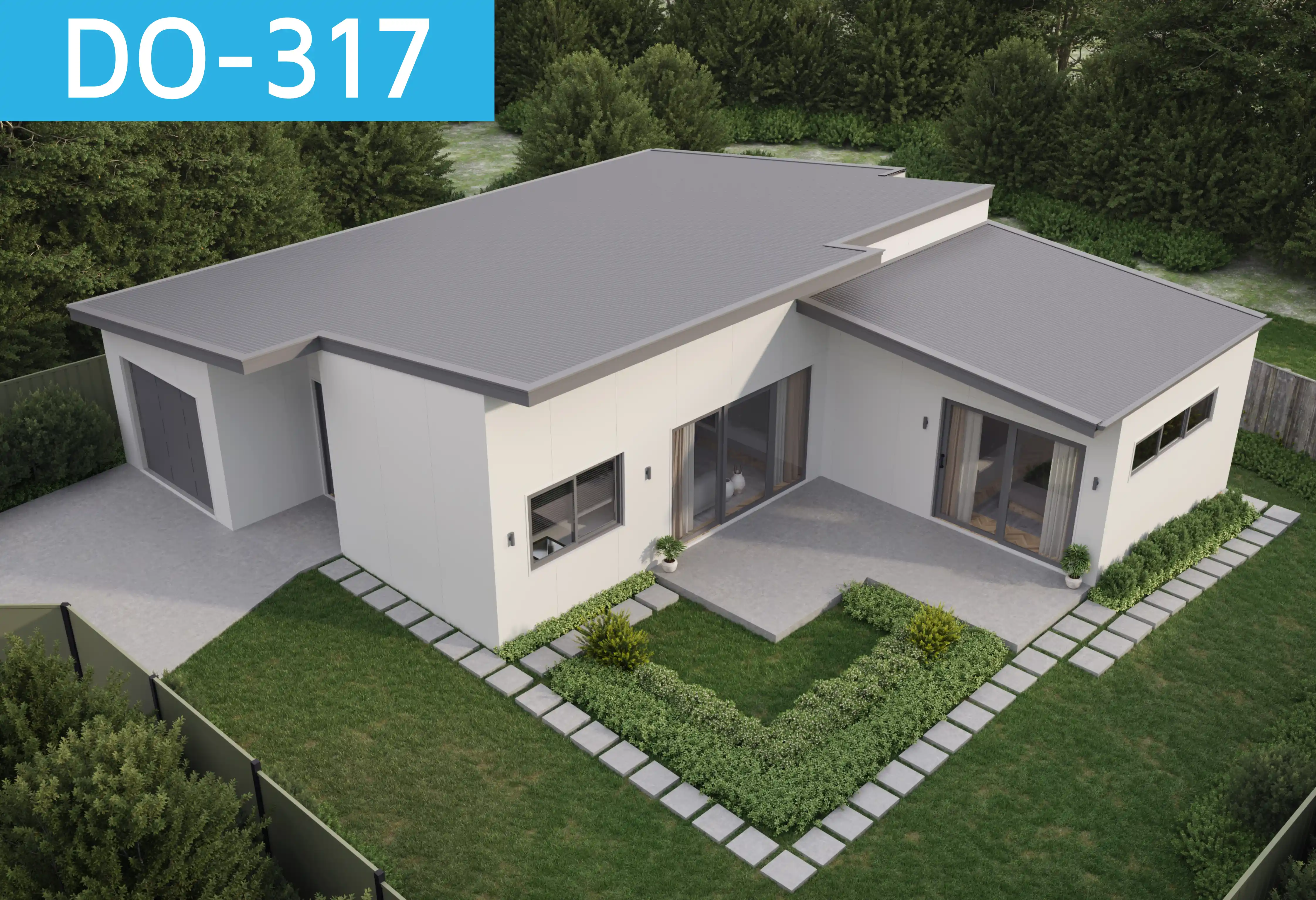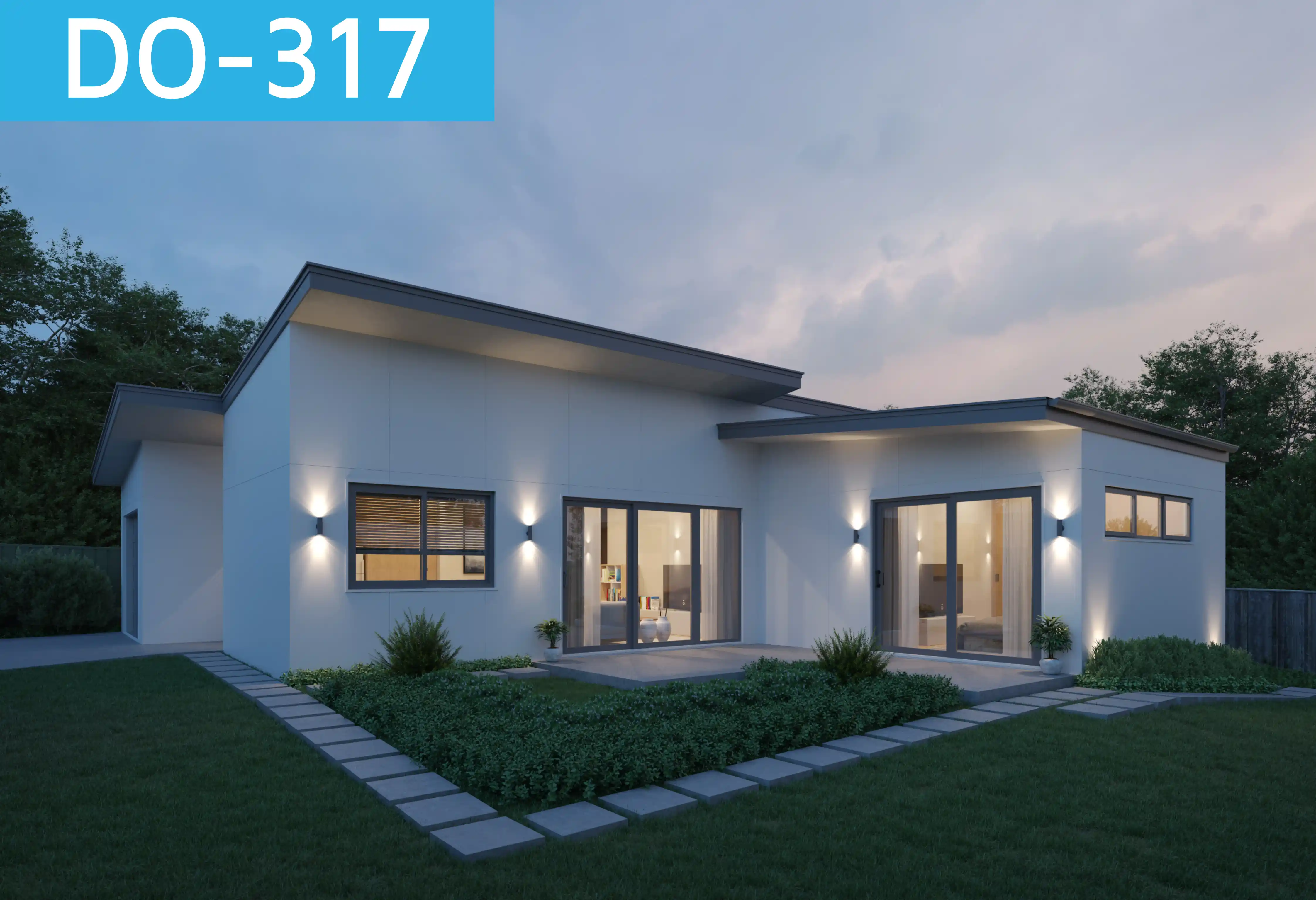 Sustainability and efficiency also play a key role in Design DO-317’s story. The simple, angular rooflines are designed to maximize water catchment potential, while high-level windows usher in cross-breezes to keep the interior comfortable without relying solely on mechanical systems. Strategically placed insulation and double-glazed windows further enhance the home’s energy performance, ensuring year-round comfort.