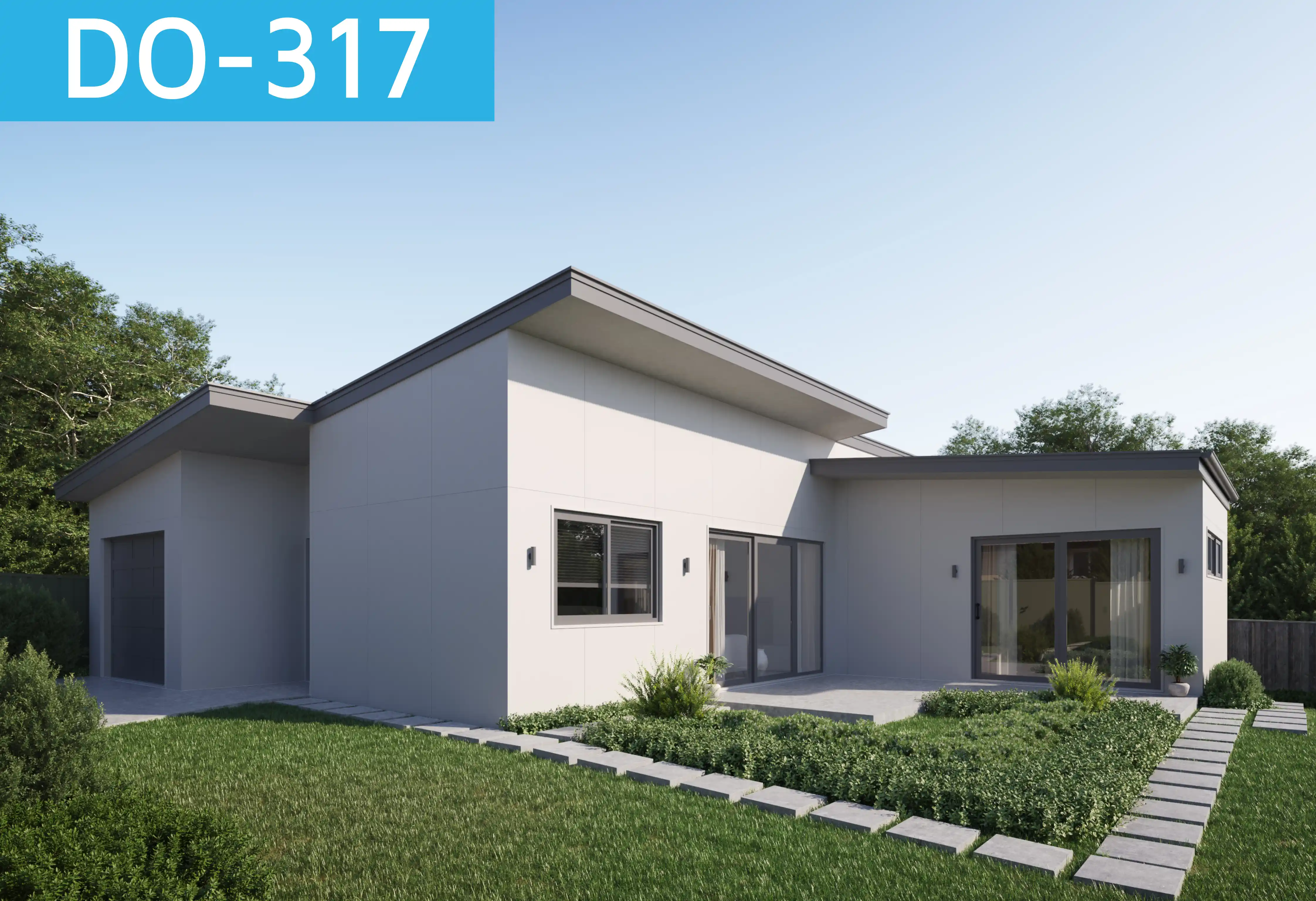 Design DO-317 tells a story of contemporary living woven seamlessly into the landscape—an architectural dance between open communal spaces and private retreats. The design unfolds as three distinct pavilions connected by light-filled corridors, forming a subtle “courtyard” feel that allows nature to flow in and around the home.